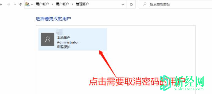 2.在管理賬戶(hù)頁(yè)面之中找到本地登錄用戶(hù)之后,選擇需要取消密碼的用戶(hù),如PC只有單一用戶(hù)登錄,則選擇該用戶(hù)取消密碼。