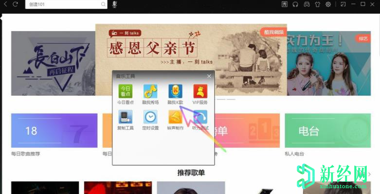 2.彈出的音樂(lè )頁(yè)面之中,找到酷我K歌功能。
